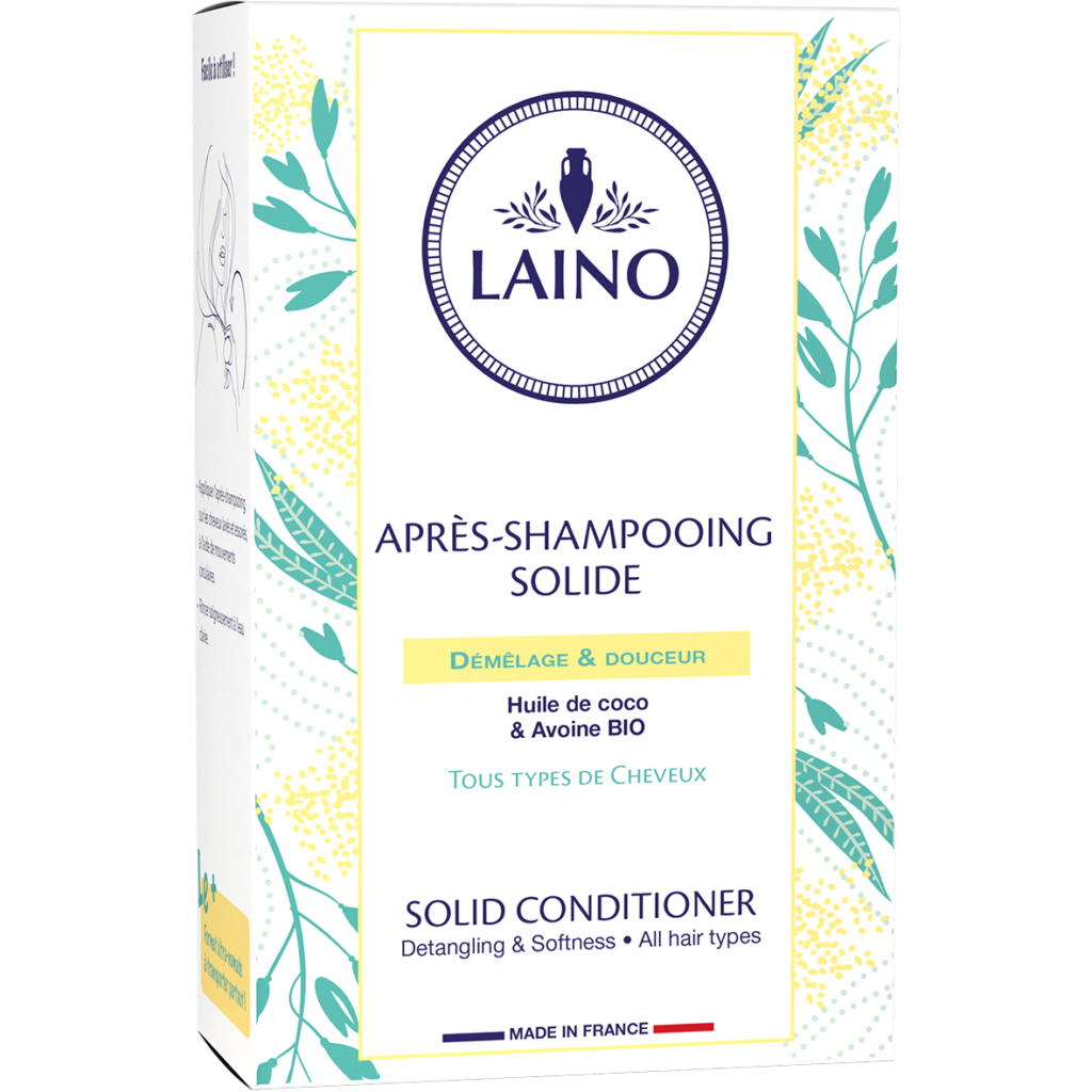 Véritable concentré de soin et d’efficacité composé à 95% d’ingrédients d’origine naturelle, l’après-shampoing solide LAINO démêle, adoucit et apporte de la brillance à tous les types de cheveux.