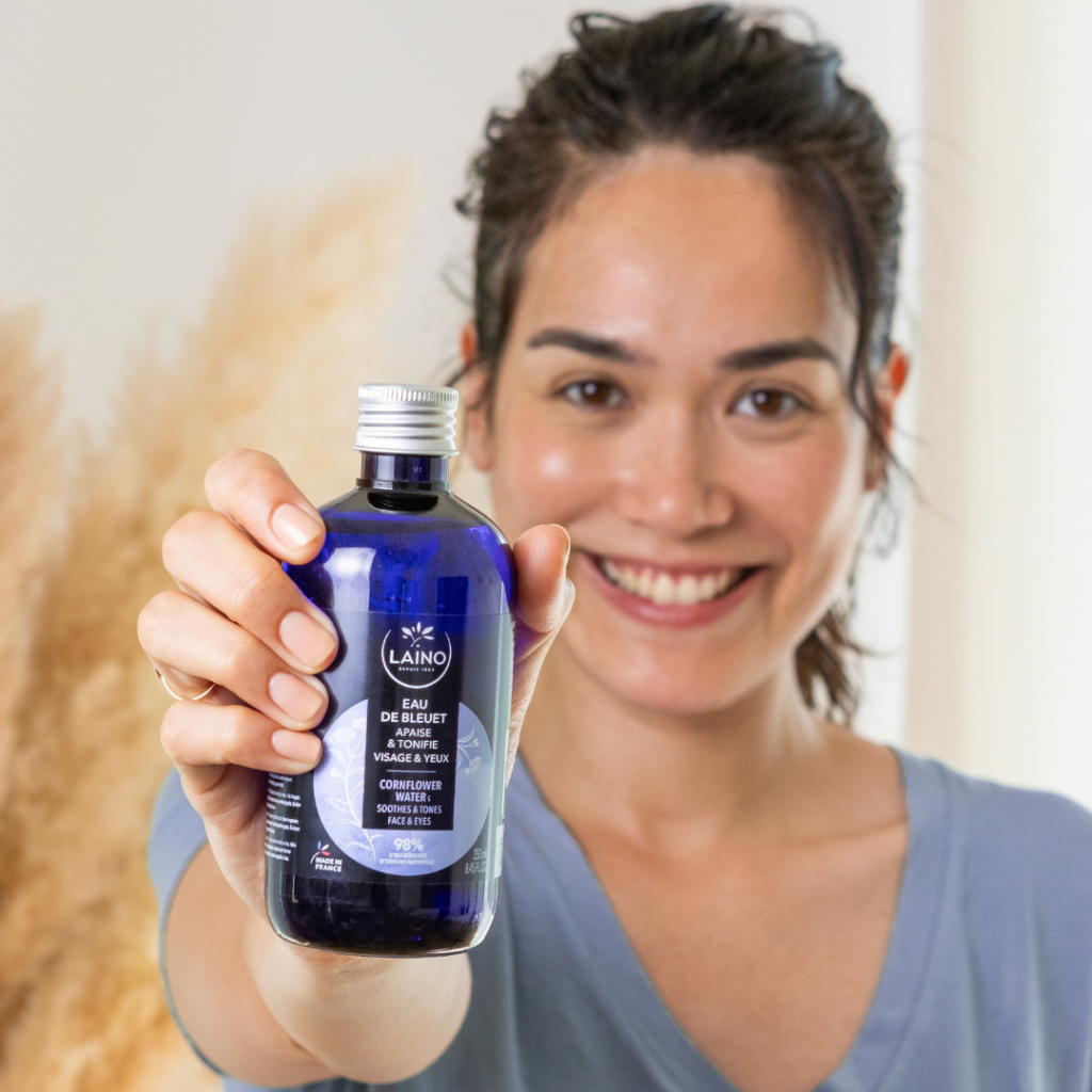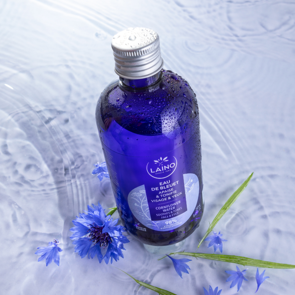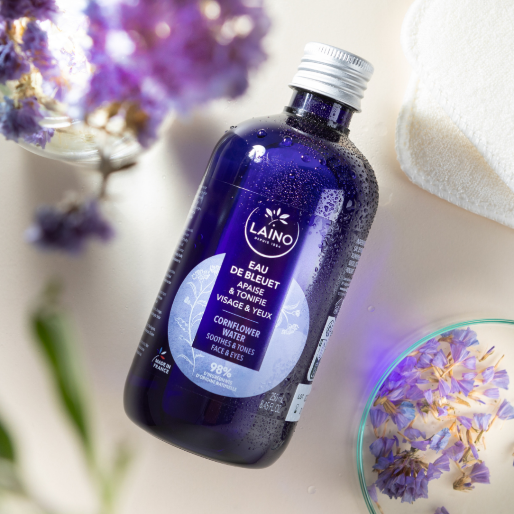 L’Eau de Bleuet donne de l’éclat au teint et apaise les yeux fatigués et gonflés. La peau est alors tonifiée.
