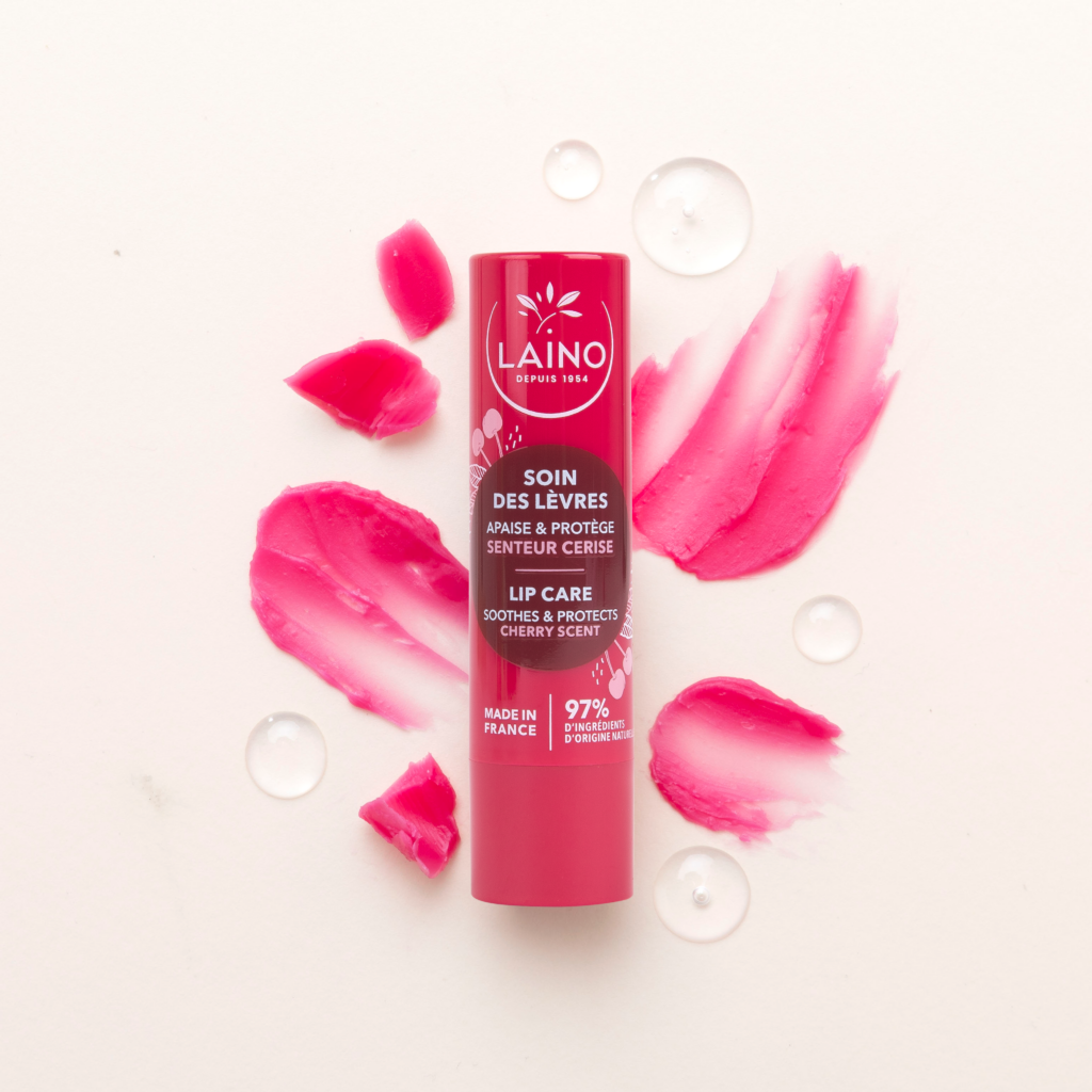 Le soin des lèvres LAINO à la texture fondante pare vos lèvres fragilisées d’un soin à la senteur cerise.