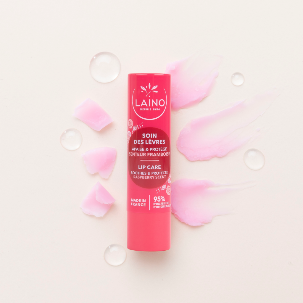 Le soin des lèvres Laino à la texture fondante pare vos lèvres fragilisées d’un soin à la senteur framboise.