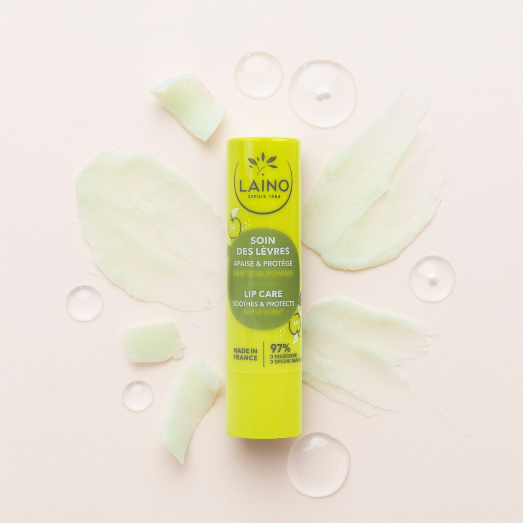 Ce soin des lèvres Laino à la texture fondante pare vos lèvres fragilisées d’un soin à la senteur pomme.